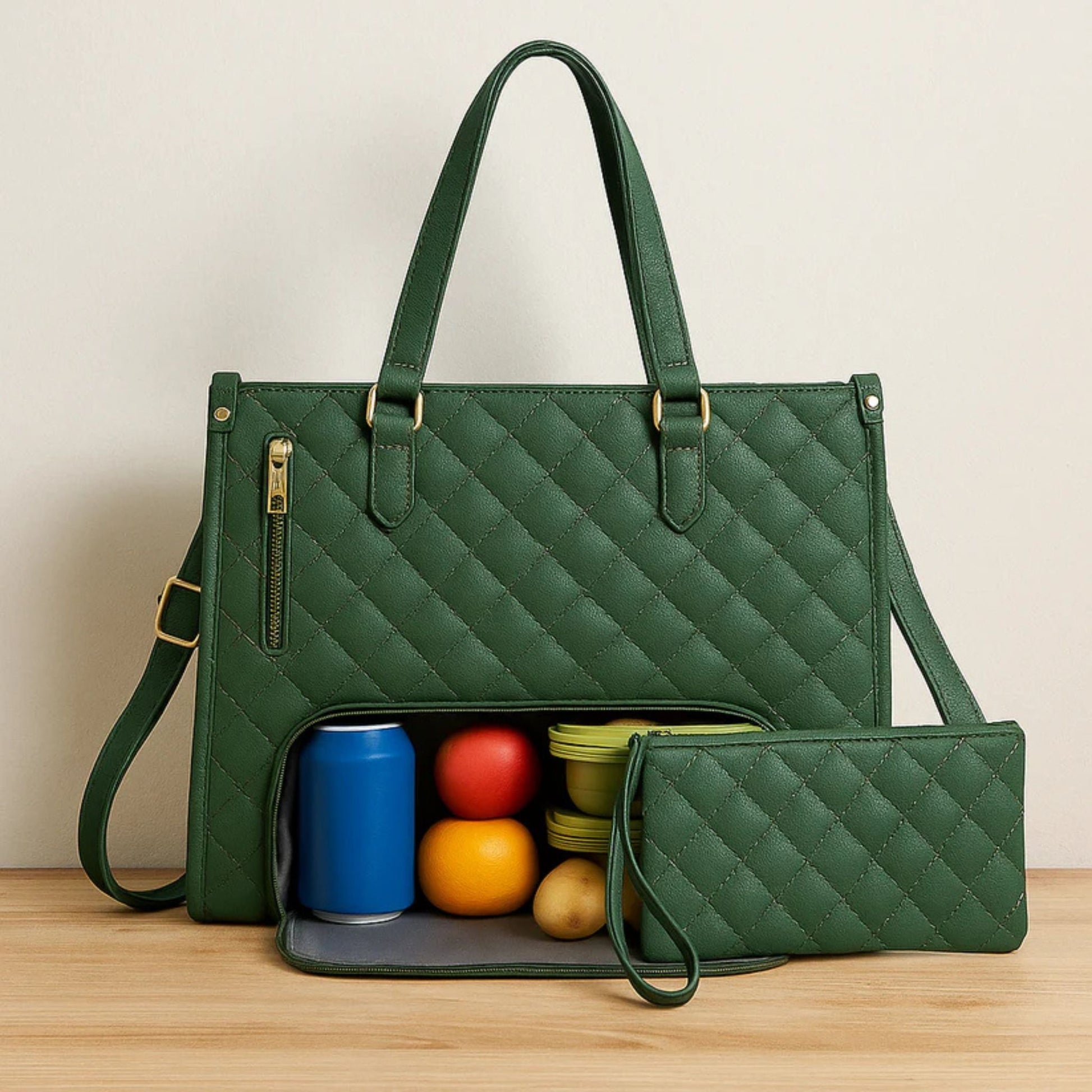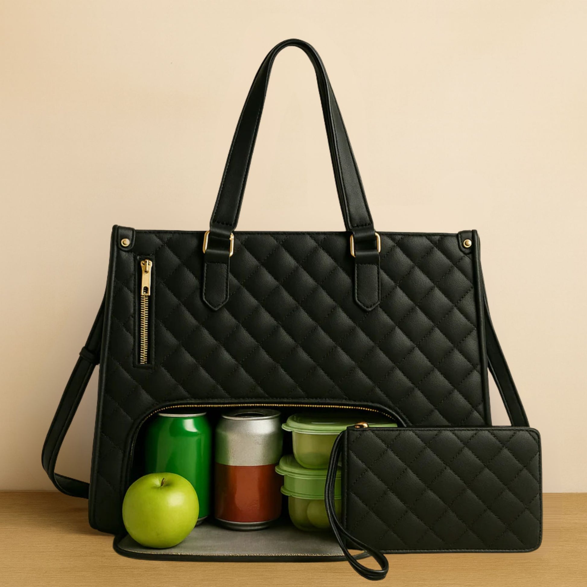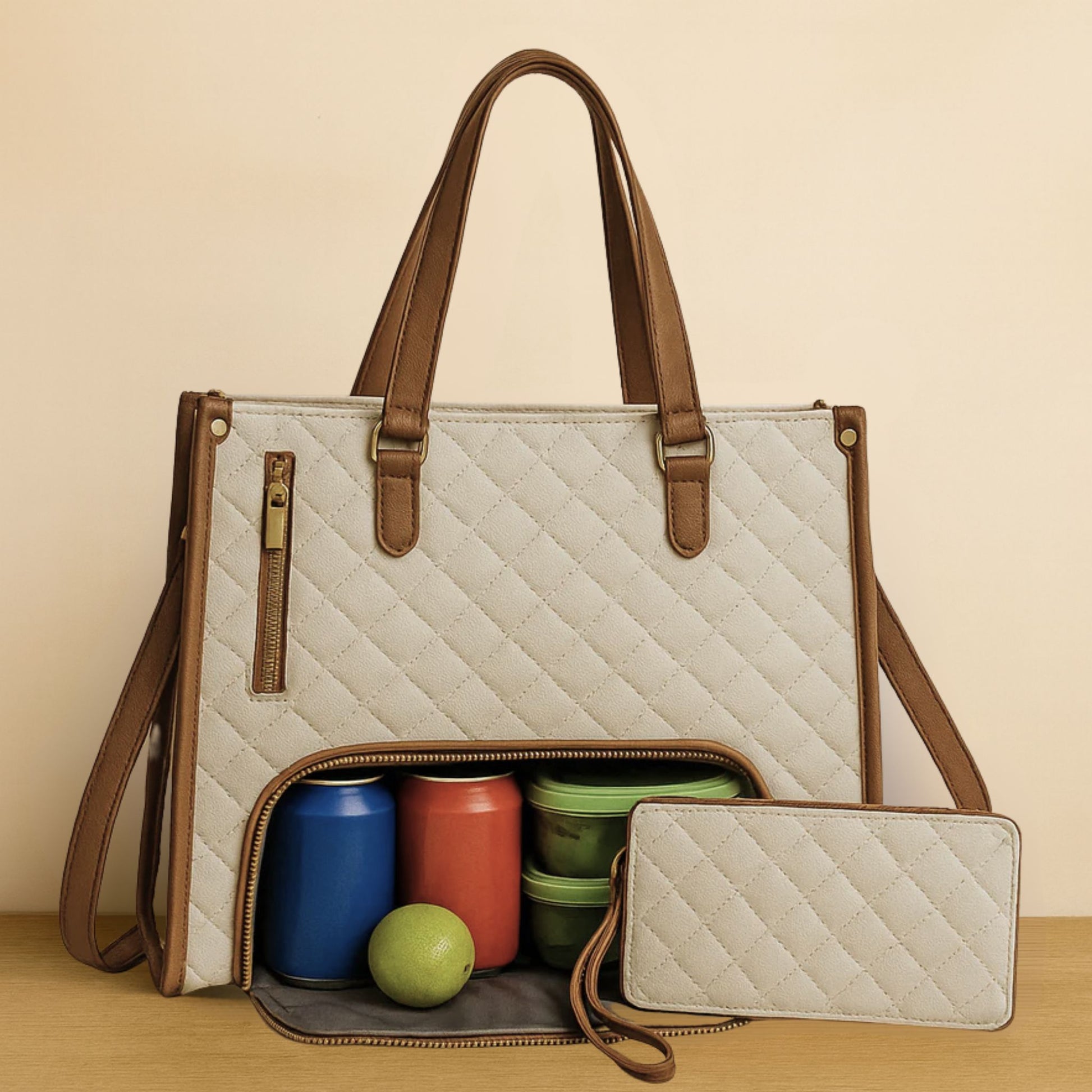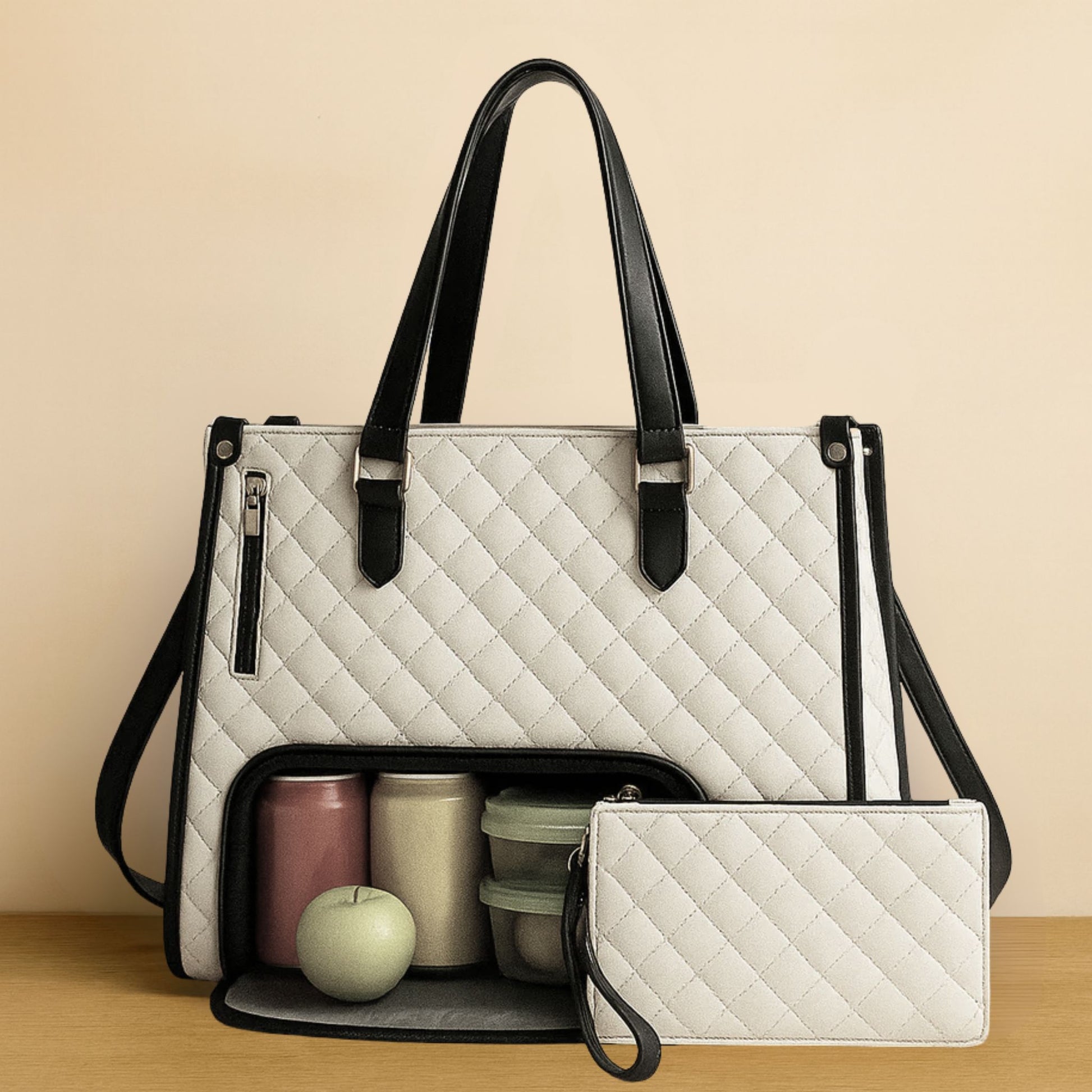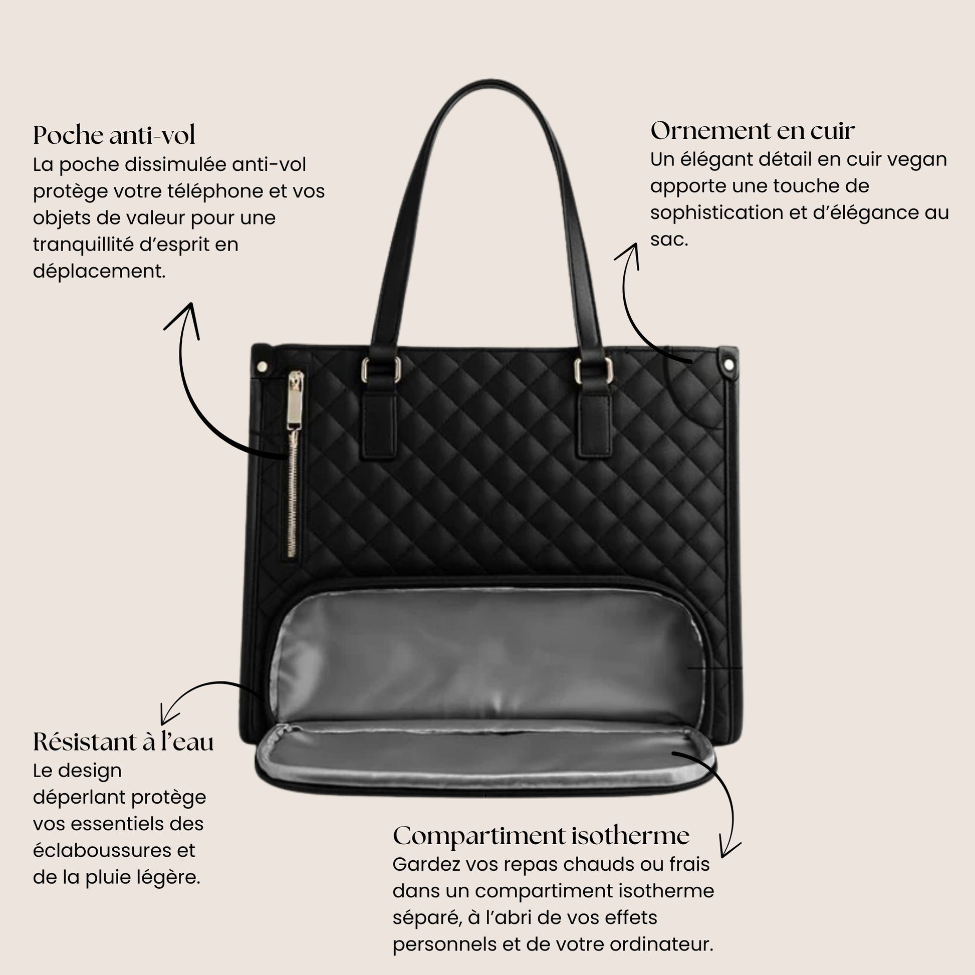 Compartiment pour ordinateur portable + pochette isotherme + sac à main élégant