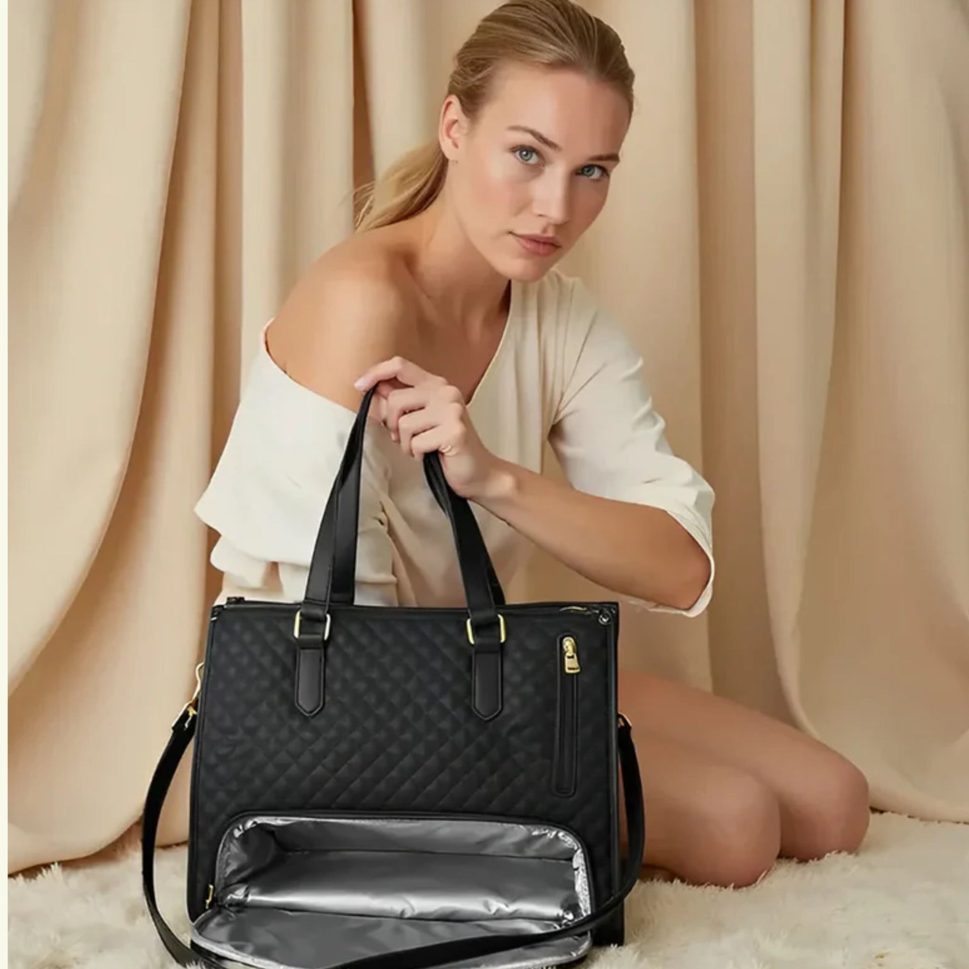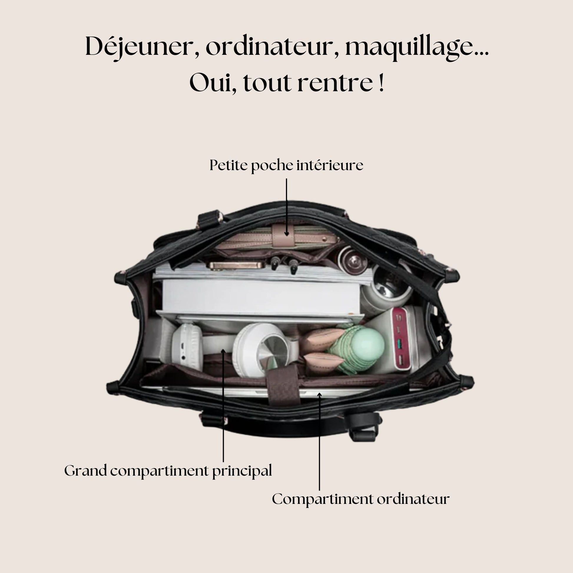 Fini de jongler entre plusieurs sacs : travail, déjeuner et essentiels du quotidien réunis dans un seul sac élégant.